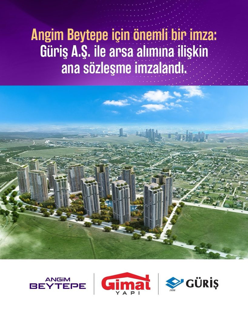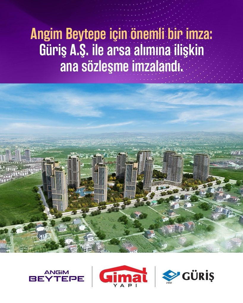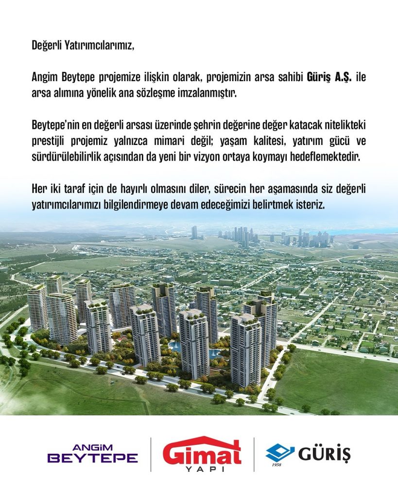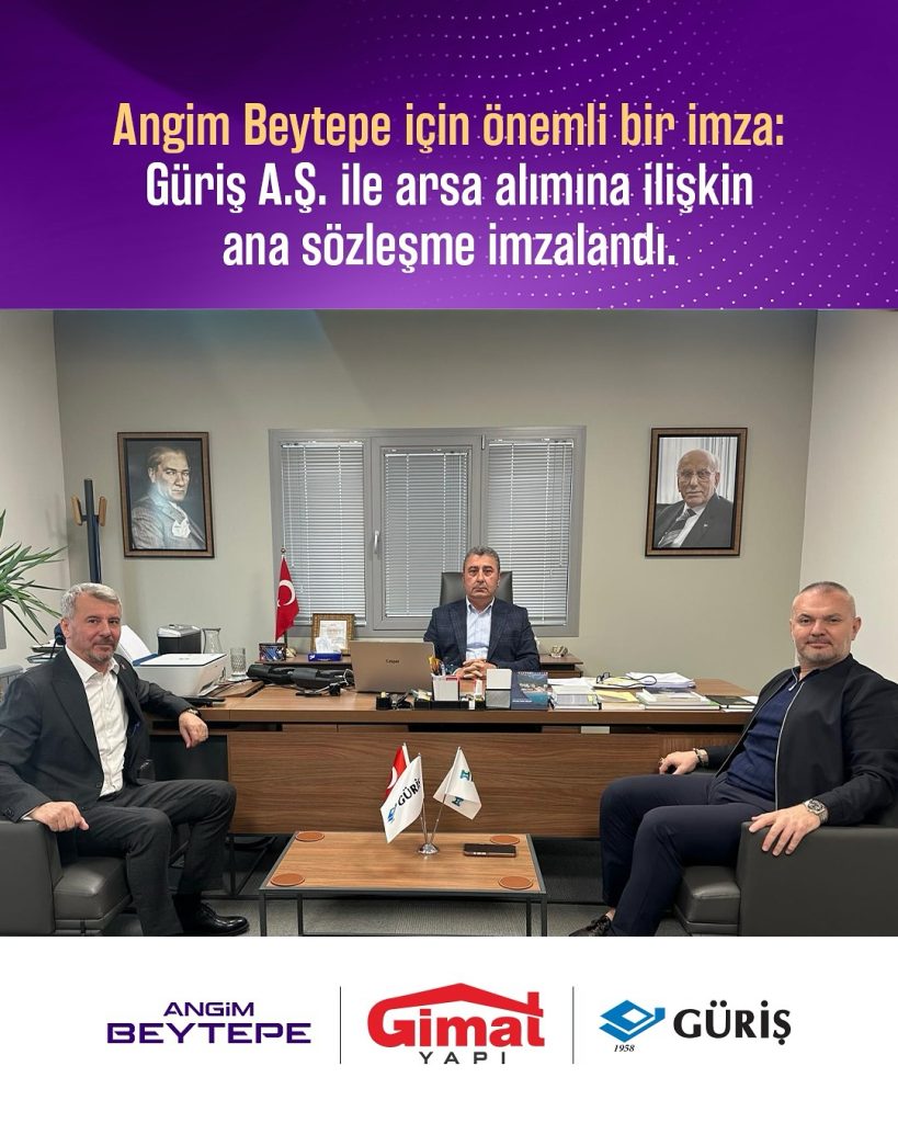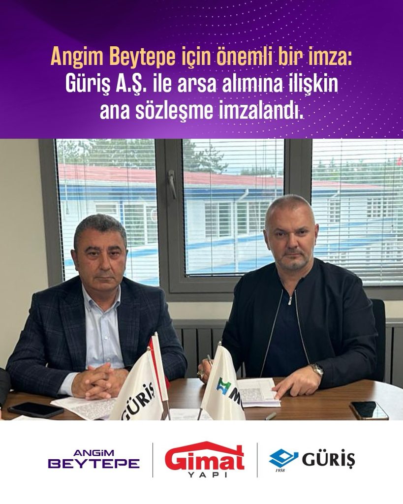 Angim Beytepe projemize ilişkin olarak, projemizin arsa sahibi Güriş A.Ş. ile arsa alımına yönelik ana sözleşme imzalanmıştır.